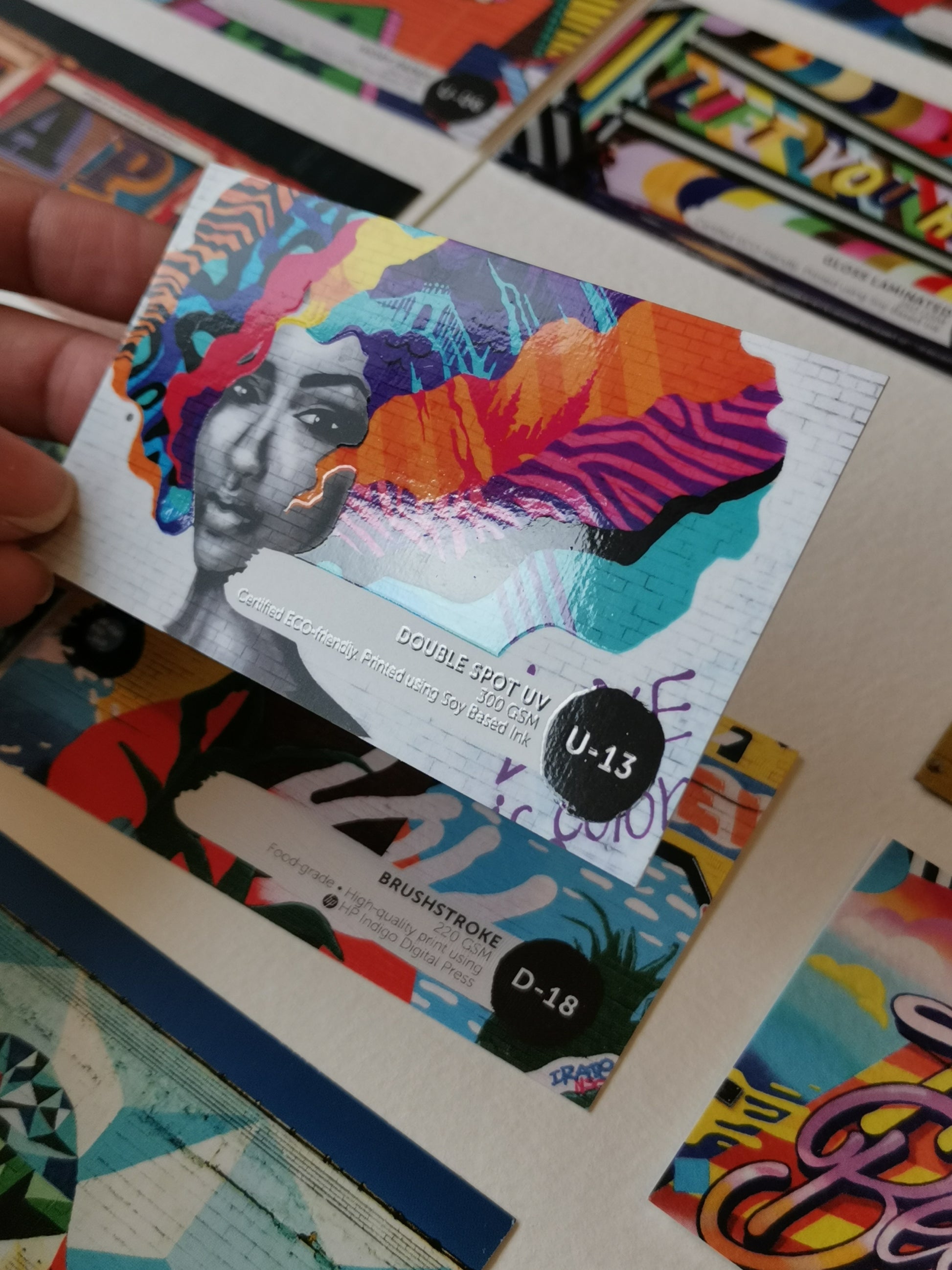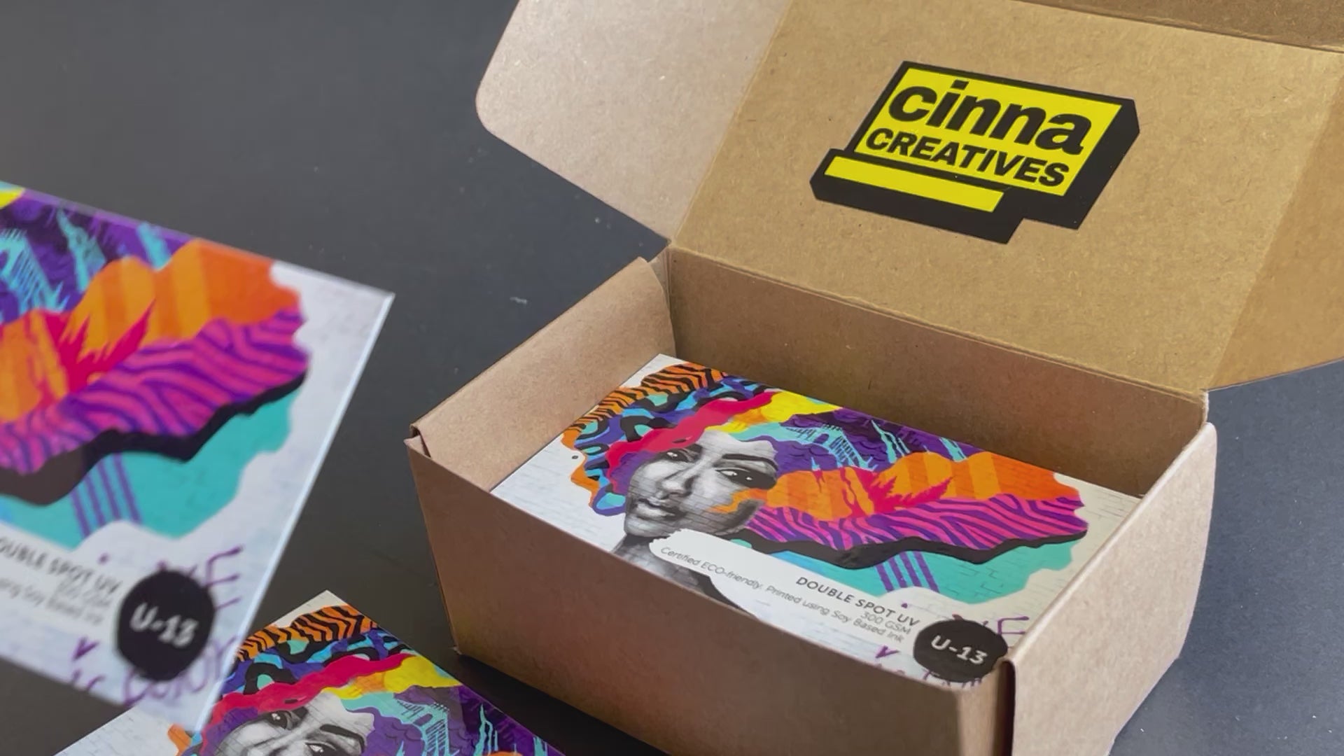 Double Spot UV Business Cards: Elevate your design with our Double Spot UV Business Cards, printed on premium 300gsm cardstock. Featuring Spot UV coating on both sides, these cards add a glossy, textured highlight to specific areas, creating a striking contrast against the matte surface. Perfect for professionals seeking a high-impact, polished finish.